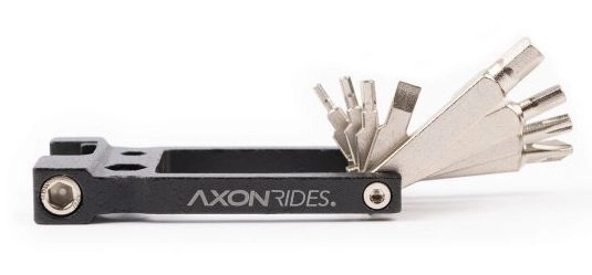 Keep your foldable electric bike up to scratch. You never know when you might need to tighten something or change an inner tube, the Axon Rides multi-tool is your complete pocket tool set.