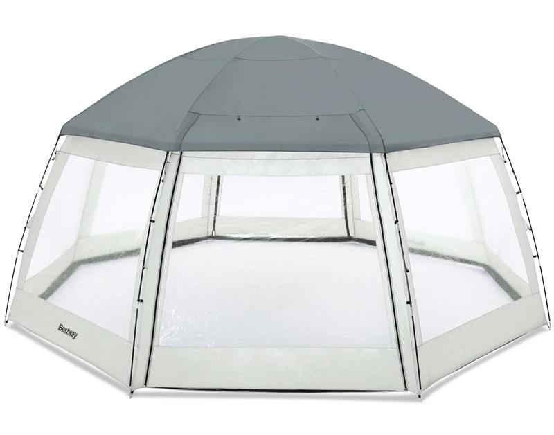 Create your own oasis right in your backyard with the Flowclear™ Round Pool Dome. Compatible with inflatable spas and pools up to 4.88m (16ft), this dome can give you some privacy and shield you from the rain, sun or other weather elements. This dome is set up similar to a tent, and has a unique 2‑layer design to keep your pool clean and offer protection from the sun.