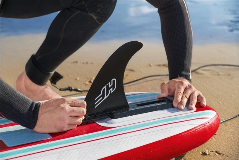 - An inflatable surfboard built to provide a smooth ride; designed to be reactive to allow for easy direction change and the removable fin offers directional stability
