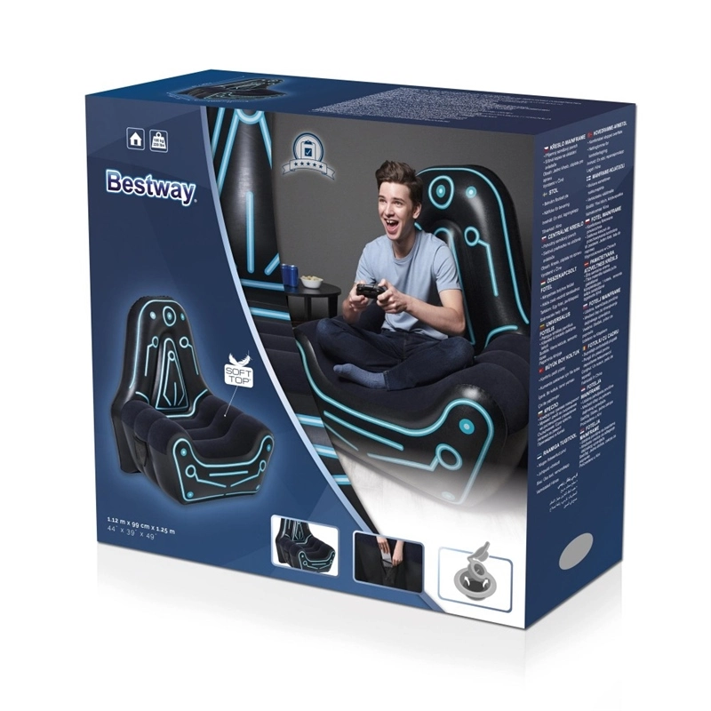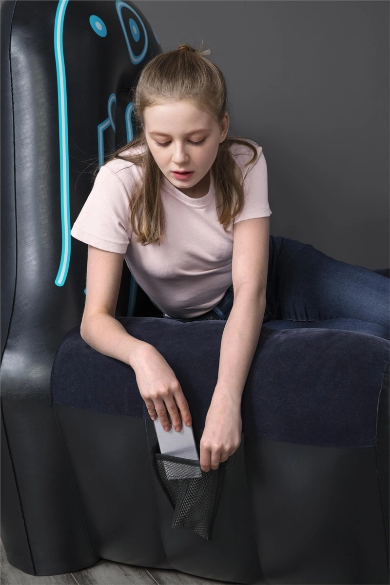 Game on! The Bestway® Mainframe Inflatable Armchair is made for the gamers. Enjoy playing your favorite video game from the comfort of this inflatable chair. The oversized arm and backrests are the perfect size for lounging, and the futuristic print will surely fit right into your game room, dorm room or bedroom. Plus, there’s a mesh storage pocket for your extra controllers. Portable, comfortable and awesome – this is the ultimate gamer’s chair!