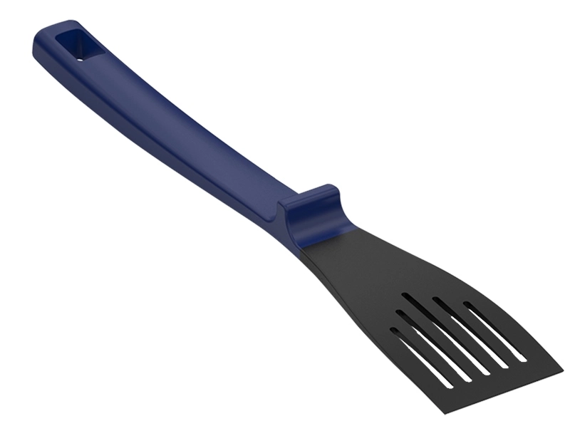 Heat-resistant nylon with a slotted handle for easy hanging.