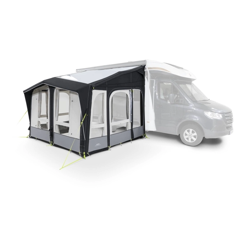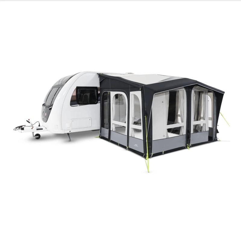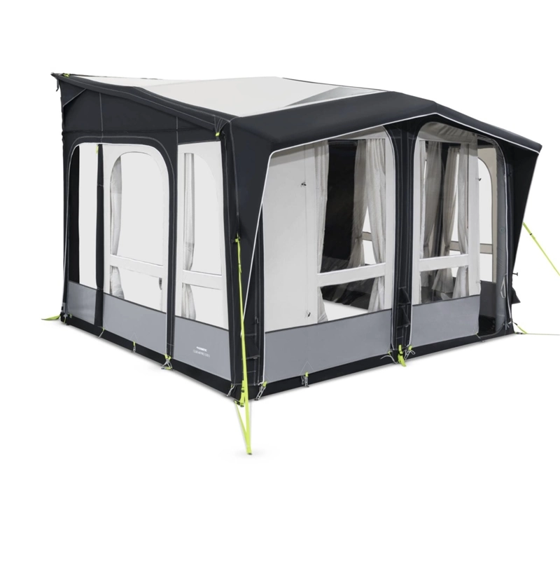 With its Dual-Pitch™ roof apex and integral canopy the Club AIR Pro is instantly recognizable. The clever front panel configuration offers two front doors, or simply unzip and remove the panels to open the awning up veranda style