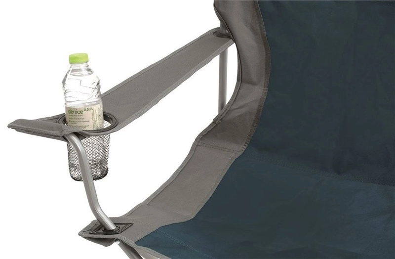 This classic amchair is both sturdy and comfortable, and features a steel blue strip along the centre. There’s a bottle holder in the armrest for drinks, and the chair folds and unfolds in seconds.