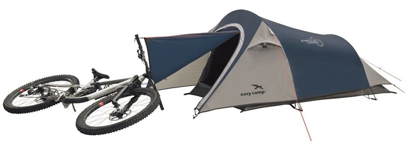 The design of the Easy Camp Energy 200 Compact tent was developed through our own biking adventures. It creates a welcome home outdoors for two after a demanding day in the saddle. The compact tunnel tent style has a versatile porch area for easy access and storing gear when closed up for the night whilst the foot of the tent offers even more space to stash gear safely. Using your bike handlebars as an upright pole, the elastic loops on the porch fabric let you create a neat canopy for cooking out of the wind and for extra shelter from the elements. After an energy-packed breakfast, the tent is quickly and easily packed into waterproof bags to share between you on your bike frames or racks using buckles.