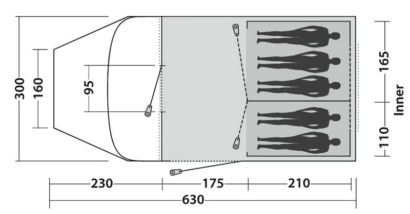 - Family tunnel tent with great living area and front wet zone