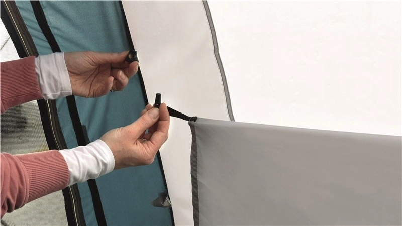 Sleeping up to eight, the Easy Camp Palmdale 800 Lux is a versatile tent with a large rear inner, with toggle-up divider, an extra detachable inner and standing height in the ample living area with curtained windows at the sides. The huge wet zone for your outdoor gear at the front makes it ideal for active holidays. Living area access is flexible via a full insect-proof mesh door and a side entrance with mesh. Rear ventilation and living area front mesh panels ensure easily adjustable air circulation whilst the Sleep Tight inners make it easy for all to enjoy a sound night’s sleep.