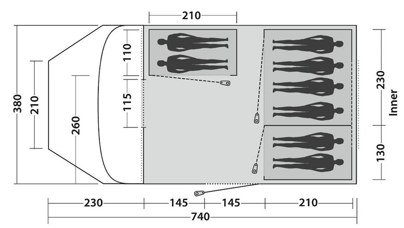 - Fully sheltered front room which works perfectly as a wet zone, a place to cook and store your gear