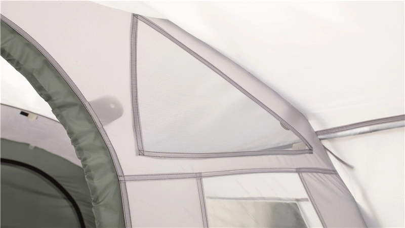 A flexible tunnel design, the large Wimberly drive-away awning has pre-angled fibreglass poles plus exterior fiberglass poles for stability, canopy support and fabric tension. With full standing headroom, curtained windows, a rear double and front door, large air vents plus a full-size toggle-up groundsheet, a two-person optional inner tent fits either side.