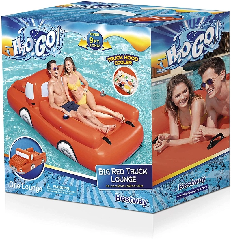 - Keep your drink close by: 2 cup holders are strategically placed around the float, so you are always within reach of your favorite beverage. Store drinks and ice in the handy extra large integrated refrigerator under the hood of the truck. When drinks are kept cold, the refrigerator lid acts as a padded seat.