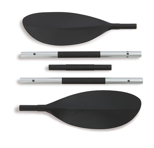 Made with rugged vinyl construction and built for performance, this sturdy kayak has an inflatable I-beam floor, a low-profile deck and high-buoyancy side chambers for stability, comfort and function. A removable skeg provides exceptional directional movement, while an adjustable, inflatable seat with a backrest is included for comfortable seating. A grab line at each end is provided for your convenience, as well as a cargo net for extra storage, a NMMA certified U.S. Coast Guard I.D., and a repair patch kit. The Challenger™ K2 Kayak provides added accessories including: two 86 inch aluminum paddle and an Intex high-output pump for easy inflation and deflation.