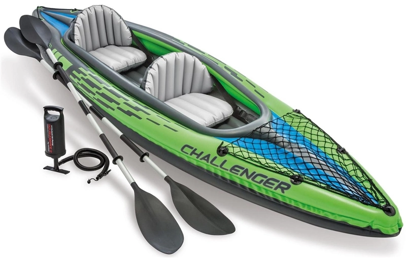 The Intex Challenger™ K2 Kayak is sporty and fun with a streamlined design for easy paddling. The bright green color and sporty graphics make the kayak highly visible in the water. Great for experiencing lakes and mild rivers solo, this Sports Series kayak is perfect for one adult. Lightweight and compact, this kayak is very easy to assemble and, with the Boston valve, it inflates and deflates in minutes. You can take the fun of kayaking wherever you go.
