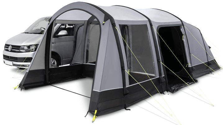 Designed to sit alongside your camper van, the Kampa Touring AIR provides the maximum amount of space without extending beyond your pitch. Inside you’ll find a spacious living area, full-height windows, plenty of mesh ventilation and a large four berth inner tent, all supplied as standard