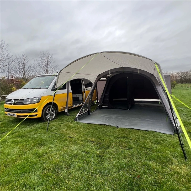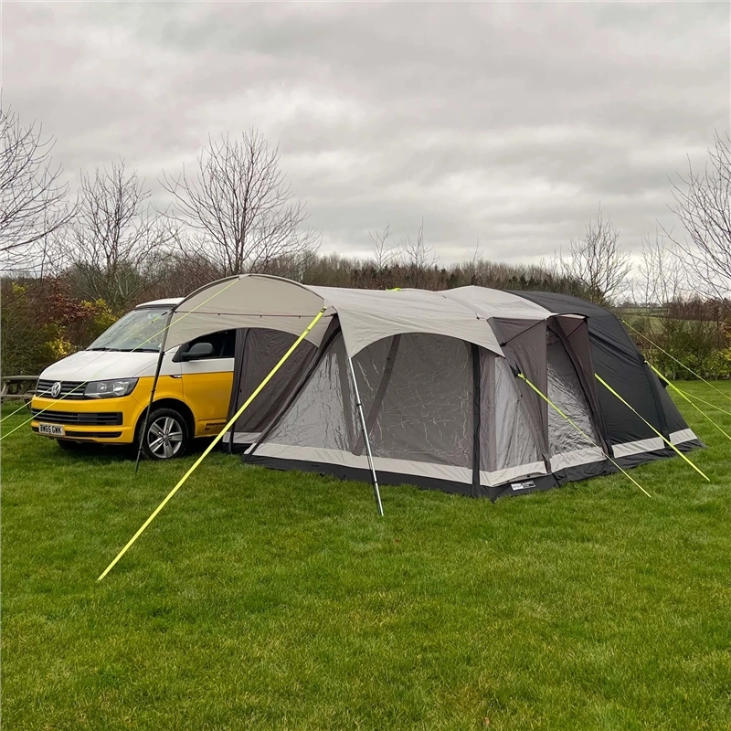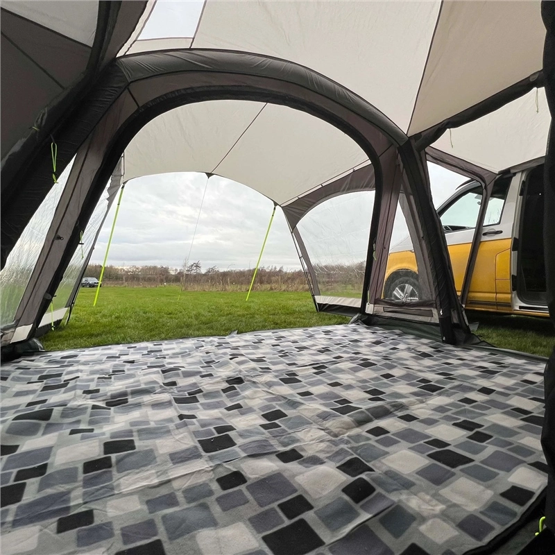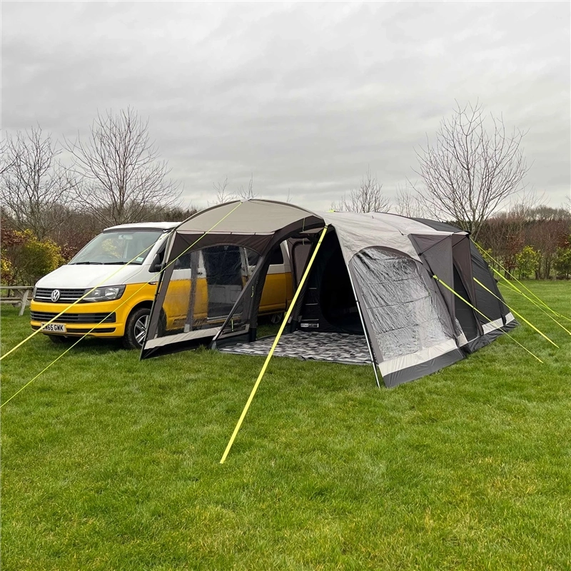 It only takes a few minutes to effortlessly inflate this campervan awning and a similar time to deflate fully, before rolling up and packing into the generously sized carry bag. Our air system is simple, speedy and strong, allowing you to inflate the three individual tubes in next to no time. With an effortless push of a button, the valve opens up and releases the air in seconds; perfect for a quick striking down time or to relieve any over-inflation. With the adjustable webbing straps there will be no kinking in your Khyam Inflatable, granting a clean and smooth finish.