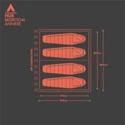 The Kamper Hub has a footprint of 3 x 3m allowing for ample room; whether you require additional living space, storage area, or even extra sleeping space, the Motordome Kamper Hub has the answer. The optional 2-berth ‘Clip in’ inner-tent (sold separately) quickly offers overnight sleeping accommodation for two and can be easily removed and packed away in the morning. The inner is created using breathable polyester to allow for a comfortable atmosphere throughout the night. The inner-tent has a fully waterproof sewn-in groundsheet for added protection against those pesky insects and the typical camping weather!