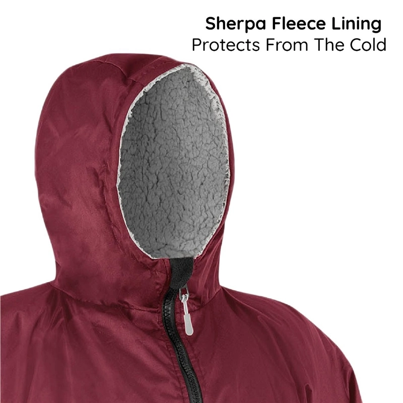 - Waterproof and windproof dry changing robe made with polyester outer and Sherpa fleece fabric inner lining to keep you dry and warm in wet and windy weather