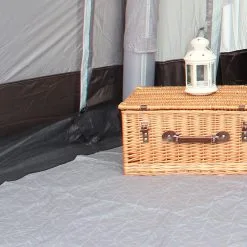 The Cayman Combo Air comes complete with a fully sewn-in PE groundsheet, steel ground pegs, reflective guylines, a repair kit, and a Double Action Hand Pump. There are mains cable access points, plus Velcro fixings for our optional LED lighting systems. A stone protection footprint groundsheet, a hardwearing dura-tread carpet, and a set of roof tensioning poles are also available for purchase, alongside an array of other convenient accessories.