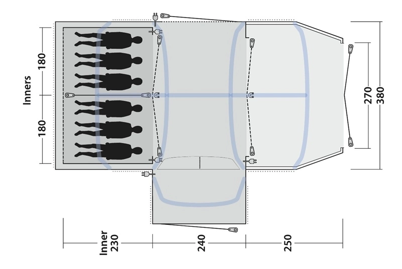 With superb style, features and reliable performance, you’ll appreciate why the award-winning Outwell Airville 6SA air tent has become a reliable camping favourite. Fast and easy to pitch, your family will appreciate its innovative Outtex 6000 RS Endurance fabric with superior tear strength and resistance to rips. The great internal space created in both height and width ensures ample room for happy tent life. Plus, our Wing Lounge, with toggle-up divider, adds an extra dimension of use as play area for the kids, a cosy corner for relaxing, for storage or as a flexible sleeping area. Sleeping six, with comfort, style and versatility, it’s the perfect family tent for demanding campers who want to make the most of their precious holiday times together.