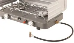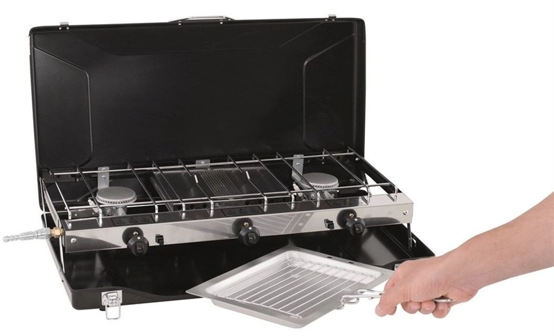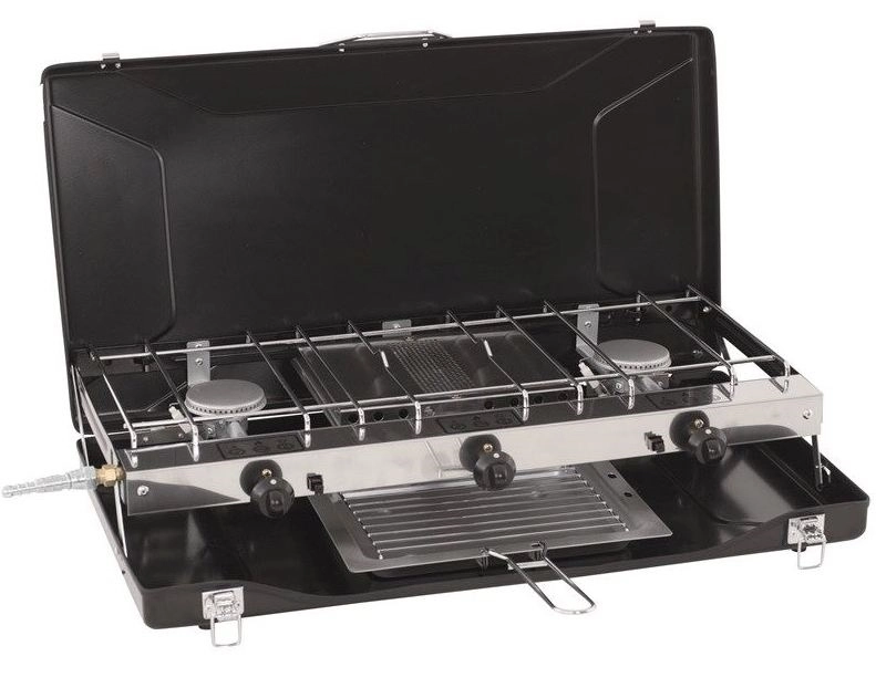 The compact design of the Appetizer Trio makes the stove easy to pack and transport. Two individually-controlled burners on each side of the 1500W grill, let’s you cook a hearty breakfast with toast at the campsite, while the windshield protects on windy days. A great value option for family camping holidays on it’s own or as a supplement to your charcoal BBQ. Securely connects to an LGP gas cylinder – hose not included.