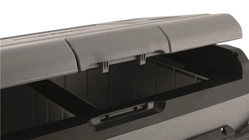 - Rugged plastic casing and lid