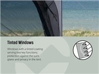 - Large tinted windows reducing glare and ensuring privacy