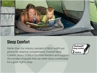 An ideal choice for short breaks and touring holidays, the Outwell Ashwood 3 tent is designed for couples seeking to share fun times together outdoors exploring new areas. Lightweight, easy to pitch and to pack away it offers a hassle-free camping experience. With its fibreglass poles, full standing height, good ventilation plus versatile Quick & Quiet access features, you’ll find it’s a great tent for comfortable campsite living. The neat front canopy design offers flexible use whilst the large front door and tinted windows deliver a light-filled living space for dining and relaxing each evening.