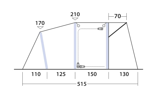 - Heavy duty Outwell zips are easy to use, running securely and freely