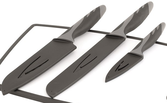 Outdoor chefs will love the professional feel of the Outwell Caldas knife and cutting board set. It comes with a bread knife, paring knife for peeling, santoku knife for chopping, dicing and mincing, plus a handy chopping board. All knives have a non-stick coating for easy cleaning, non-slip handles and a blade cover.