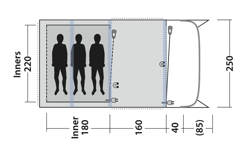 - Reliable, easy-to-operate inflate/deflate valves conveniently placed outside the flysheet
