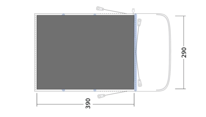 Profile mirrors tent groundsheet. Pegs included