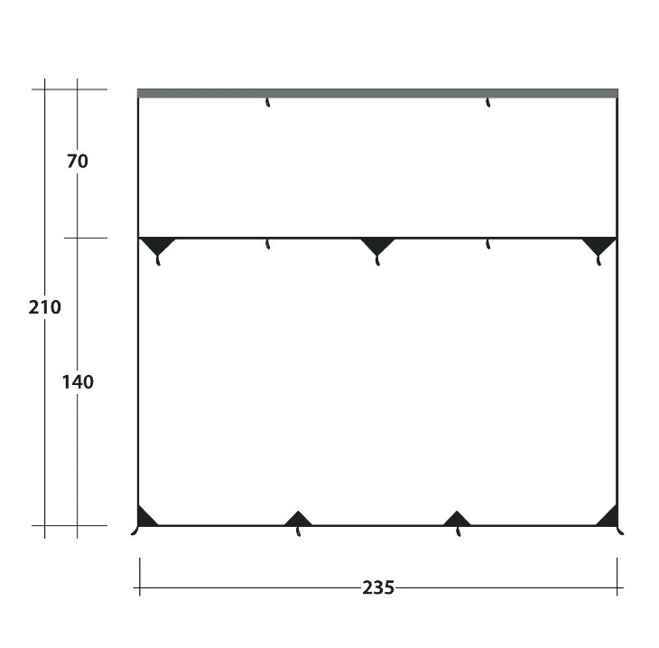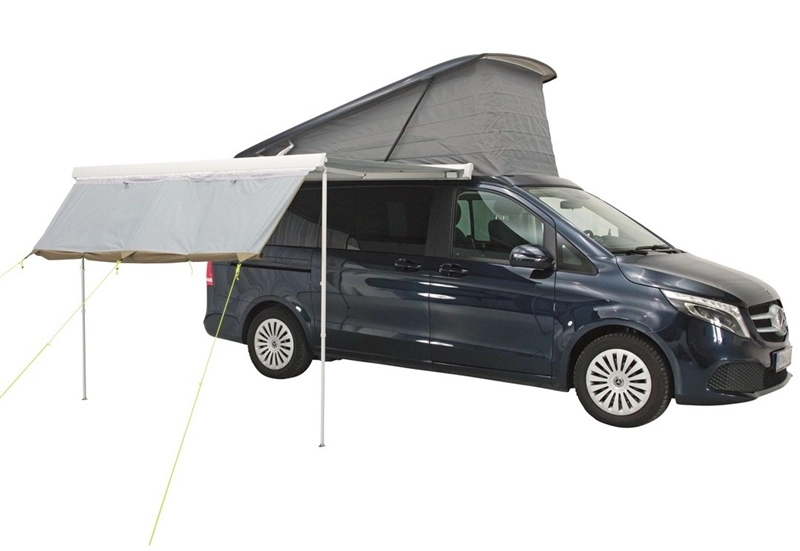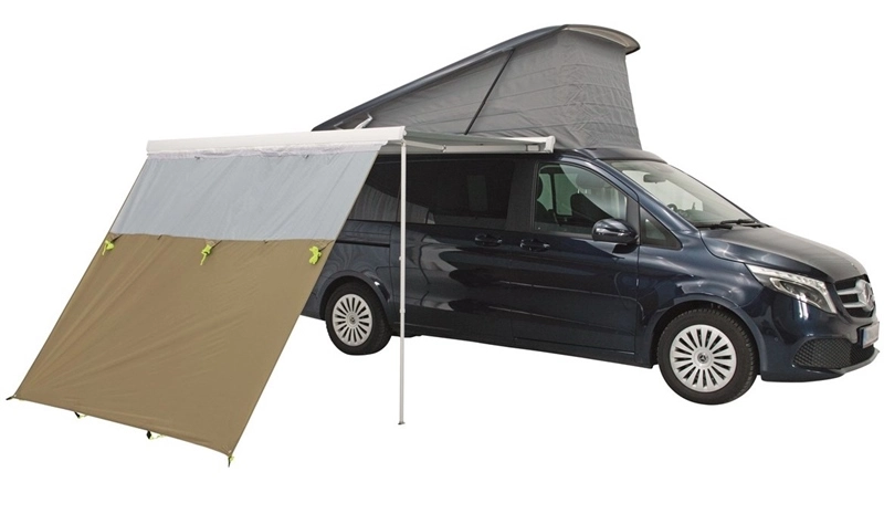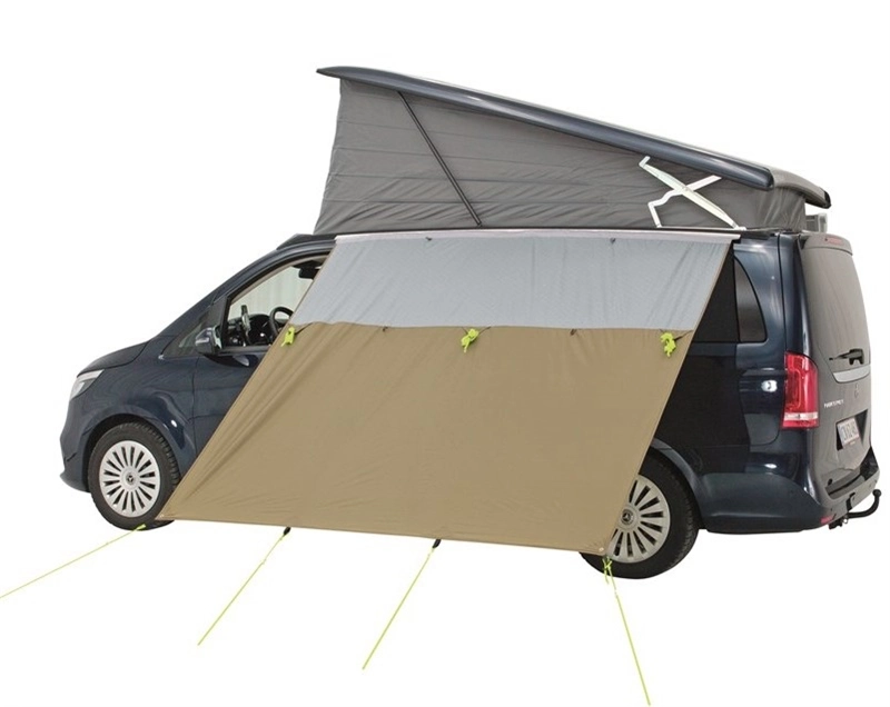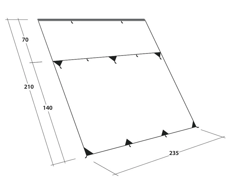 The Outwell Hillcrest Tarp slides into the beading channel of wind out awnings or directly to the vehicle rails, if used on the side without the facility. It is secured by guylines and ground pegging. adding extra privacy and protection quickly and easily. It transforms a simple shelter quickly into practical living space with shade, protection and privacy for the interior when used on the door side. Used on the other side, it offers shade, especially useful for the van fridge, thus conserving battery life. Sturdy eyelets offer the option to extend it as a canopy with the upright poles (included) or it can be rolled up partially and secured by toggles whilst still offering protection from the elements. It can be used with the Fallcrest Side Panel Set for even more shade and privacy plus wind and rain protection.