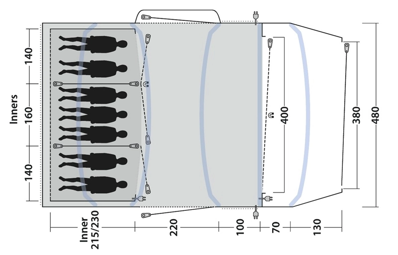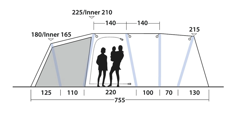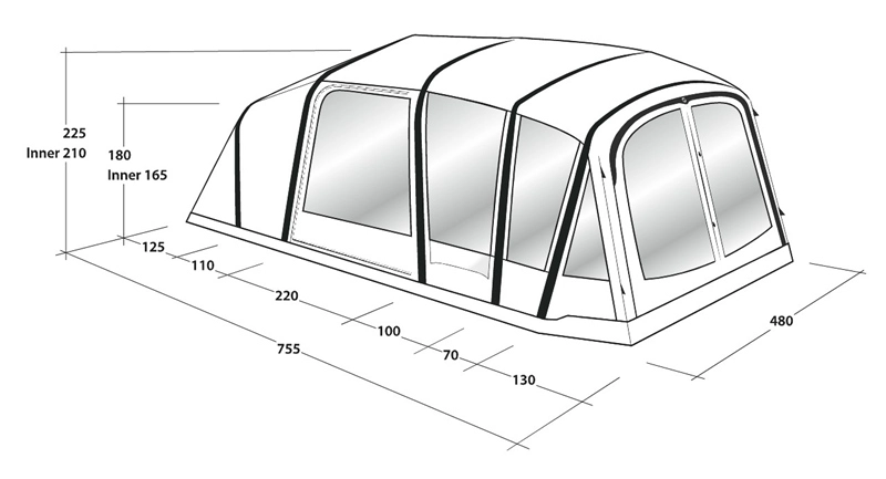 - Reliable, easy-to-operate inflate/deflate valves conveniently placed outside the flysheet