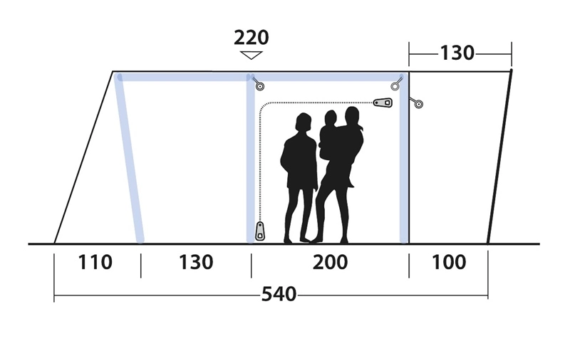 - Heavy duty Outwell zips are easy to use, running securely and freely