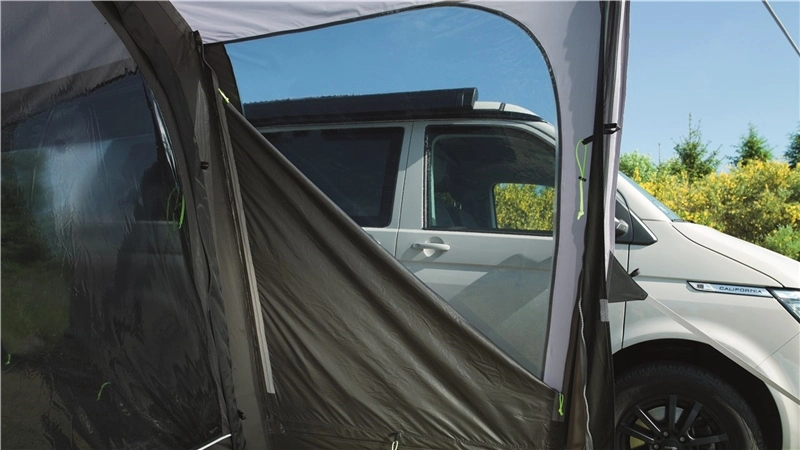 An outstanding choice for larger families, or when holidaying with friends. The inflatable Outwell Jonesville 440SA Flex drive-away awning is pitched parallel to either side of most campervans via its removeable access zone, there’s plenty of room for everybody to unpack, stretch out and relax in comfort under its durable, fully waterproof, ripstop fabric. With ample headroom and easy access, you certainly won’t be falling over each other on the campsite. Plus, you can enjoy more space in the van on days out as the awning can be left freestanding securely on your pitch. A large canopy over the movable front wall, with insect-proof mesh screen, offers either deep shelter for you to connect with the natural world or more enclosed living space for eating, playing games or just chilling out together. Prepared for the Outwell Nightlight System (patented) providing built-in lighting inside and outside the tent powered by optional ONS Light Unit Sets.