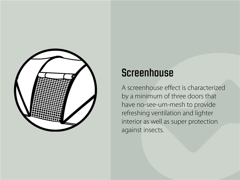- Large mesh panels on all three sides for use as screenhouse