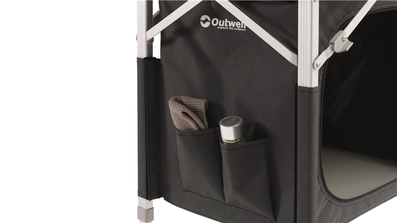 Adding practical convenience and storage solutions for family tent living, the Outwell® Kitchen Table Range includes a wide range of sturdy options. Easy to set up, all the versatile designs offer durable, stable surfaces to prepare meals safely. Padres designs have solid bamboo table tops, some with a windshield, and include a storage/table model with a working height side unit and windshield. The small packed size of Padres Double offers two cupboards under a large worktop. Samos and Andros designs are made from durable embossed polyester fabric with zip doors under the table tops. Our magnetclosed door kitchen table range uses mesh screens at front and rear of the cabinets to ensure 100% bug-free storage with ventilation.