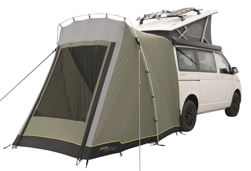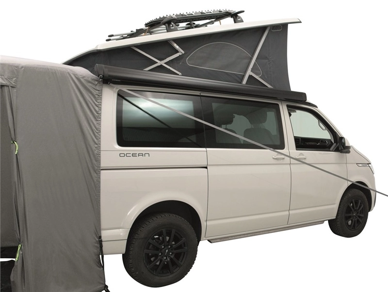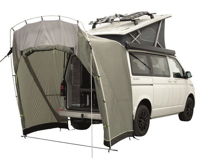 Couples, families and friends will all appreciate the value of the extra space the ingenious Outwell Sandcrest L delivers for more comfortable van life. As a rear-mounted, fixed awning, with just one aluminium pole, it´s really light, packs away small and vehicle doors aren’t blocked by guylines. It’s designed for busses and vans like the VW T6, MB W447, Peugeot Traveller and similar. It’s perfect for camping and day trip use for cooking, as a day shelter or changing room. The smart design allows you to close and lock the tailgate securely when you head off on a hike or bike adventure or leave it open through the night whilst you secure your van rear with its insect-proof screen for great ventilation. As a bonus, you can raise the door as a shade canopy (poles not included) when fixing your bike or recharging your battery after your outdoor excursions.
