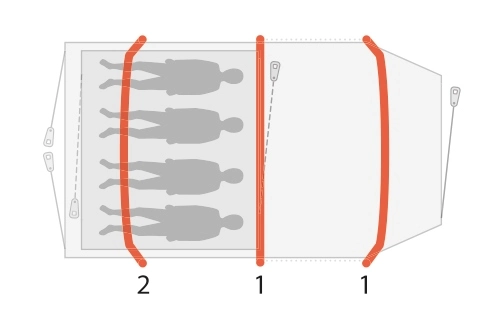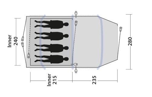 - Reliable, easy-to-operate inflate/deflate valves conveniently placed outside the flysheet