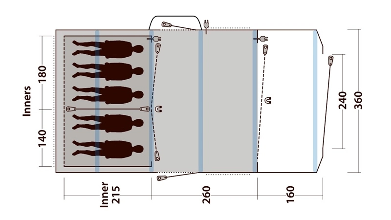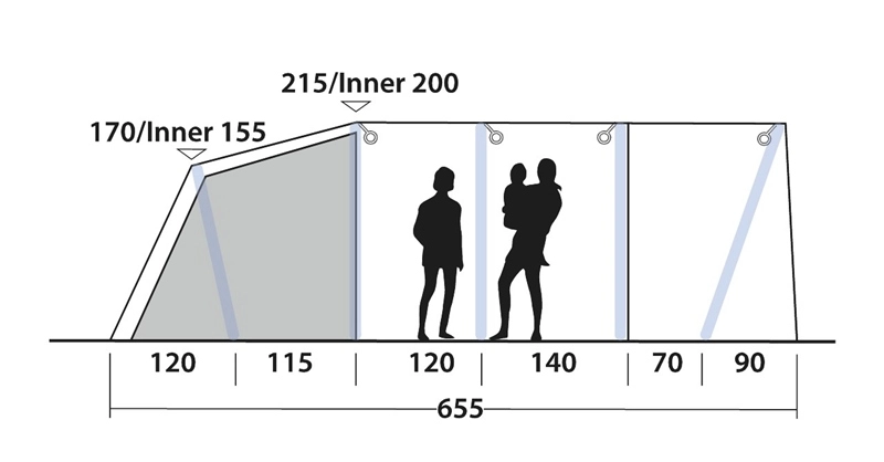 - Three zones provide a large family with wet room, dry living room and bedroom. Vertical front wall for enhanced practical living space and easy zip operation