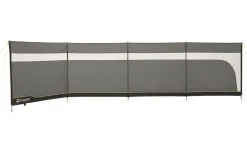 The 6.5m Outwell Windscreen Premium enjoys four fabric sections with PVC ‘sneak peek’ windows in its 140cm height. With extra durable pole sleeves for the tough embossed Outtex 100% polyester taffeta fabric, the 16mm spring-linked poles have a secure home for their three-section profile secured by ground spikes, steel pegs and luminous guylines.