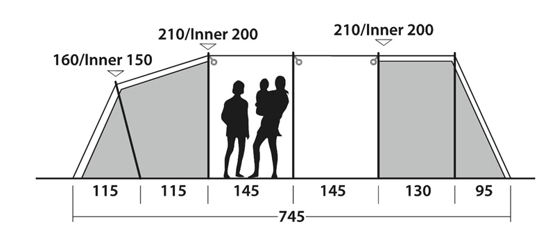 Three zones provide a large family with wet room, dry living room and bedroom. The front inner is perfect for storage or as an extra bedroom and is easily removed to increase living space