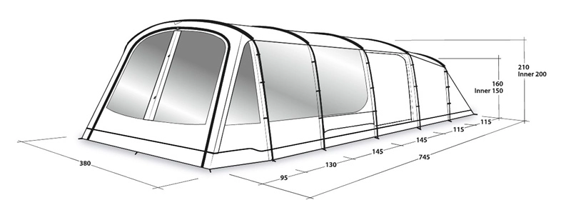 The spacious design of the three-zone Winwood 8 sleeps up to eight in four Premier bedrooms with Dark Inners and Outwell Quick & Quiet Inner Doors. It features windows and low ventilation points on each side. One bedroom, in the third zone, can be used or taken down for a larger living area. Light-filled, its many windows, Panorama front, Rear Ventilation System and Outwell HookTrack System ensure camping comfort.