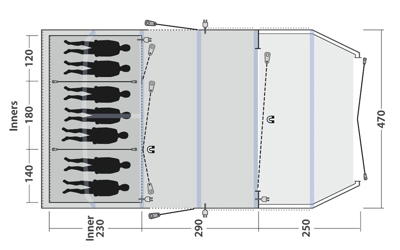 - Reliable, easy-to-operate inflate/deflate valves conveniently placed outside the flysheet