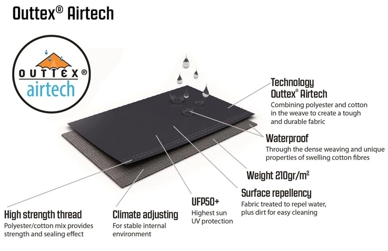 - Flysheet – Outtex® Airtech, 65% polyester / 35% cotton