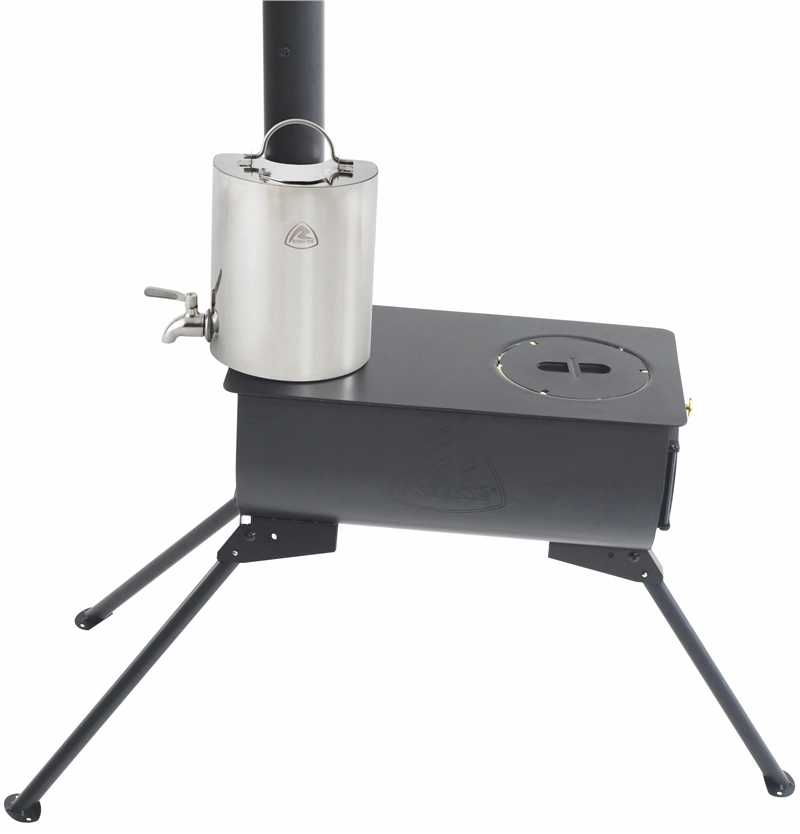 The Bering is a water heater that fits around the stovepipe of a Robens tent stove.