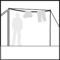 - Groundsheet: Polyethylene 10.000 mm, 100% polyethylene