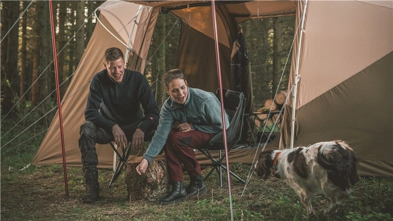Sleeping five, the Wolf Moon TC 5XP uses HydroTex polycotton RS fabric to maintain a comfortable tent microclimate that’s perfect for warm climates. Rear and low vents control air flow enhanced by mesh panels behind the external doors, which open the tent for bug-free ventilation and great views out. A waterproof curtain with upper PVC panel backs the mesh window to balance privacy and air flow. Rain Safe side door and front porch protects access.