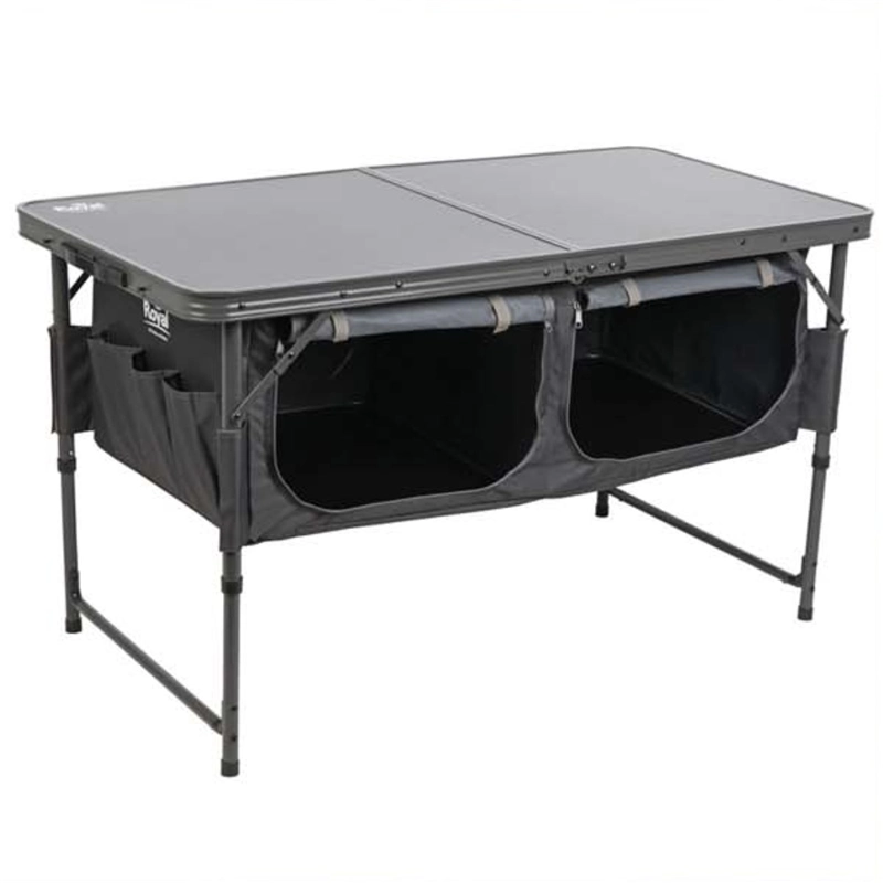 Enjoy the great outdoors without the clutter. The Royal camping storage cupboard and table is a compact foldable storage unit and table that makes it easy to organize your belongings and have a place to eat or place a drink when you’re camping with the family.