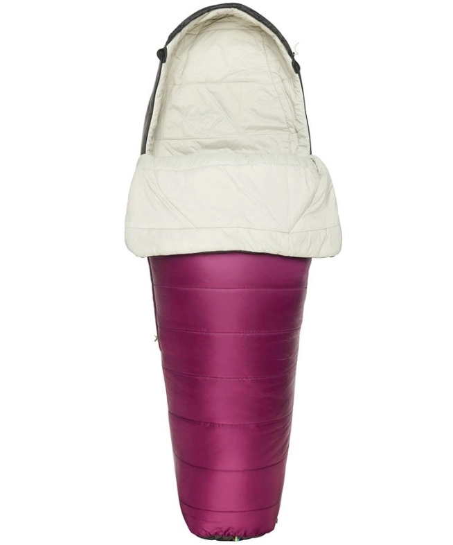 Whether you’re road tripping or backpacking, there’s never a reason to sacrifice quality sleep over dependable camping gear. Transform your setup with the Women’s Synthesis 20, our do-it-all sleeping bag that combines our SierraLoft™ synthetic insulation with lightweight, durable materials that are typically reserved for more premium sleeping bags. Its dual, anti-snag zipper system makes sleepy midnight adjustments easy, and a draft collar along the zipper prevents uncomfortable cold spots from touching your skin. To help you fine-tune your temperature, our patented self-sealing foot vent adds instant ventilation at the toe, while the cinching hood locks in heat at the head (and doubles as a barrier when your pillow likes to run away). Plus, with a durable water repellent (DWR) treatment, a little rain will never ruin your peaceful night.