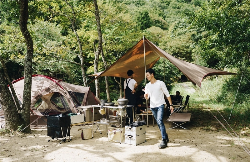 The easy to set up Hexa Evo Pro. Tarp only requires 2 poles and 6 stakes to create a space that brings together an entire campsite. The elegant shape combines design you have come to expect from Snow Peak with the functionality to house multiple tents and living areas underneath. Our premium water-repellent hexagonal tarp creates even more protection with the new Shield process material.