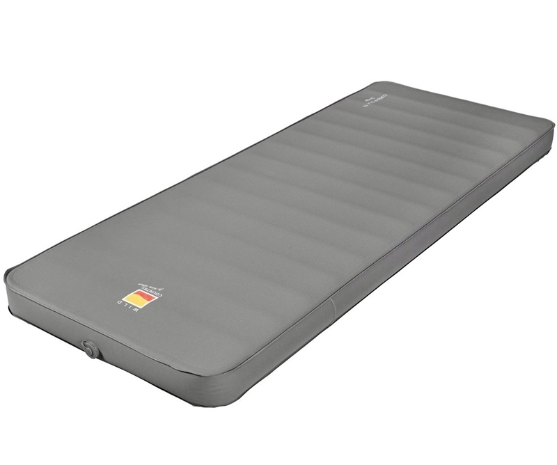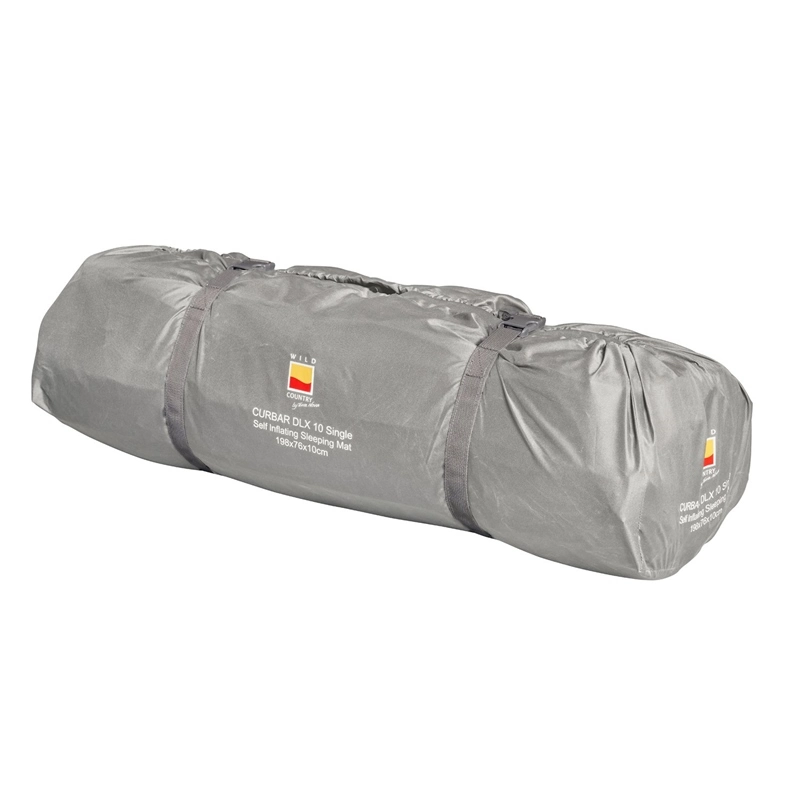 The Curbar DLX Single Self Inflating Sleeping Mat is the perfect choice for a good night’s sleep on your camping holiday. The top and sides are made from a soft feel stretch polyester fabric that helps mould the mat to your shape when you sleep and base is made from a heavier duty 190T polyester for durability. The mat is filled with 10cm deep PU foam for insulation that has horizontal cores cut into it to remove weight and bulk whilst speeding up inflation and deflation. We use a durable TPU air tight coating on the inside of the outer fabric and a screw-top valve to prevent accidental deflation. The single mat has one three position valve for convenience. This valve has a fully open position for speedy inflation/deflation, a top up position so you can regulate the firmness of the mat and a pack away position that helps prevent re-inflation when you are packing the mat away. Supplied in a side opening carry bag for easy pack away that also has compression straps to reduce the transport size.